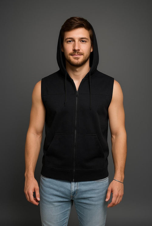 Erkek Fermuarlı Kapüşonlu Kanguru Cepli Kolsuz İnterlok Yelek-Y1142